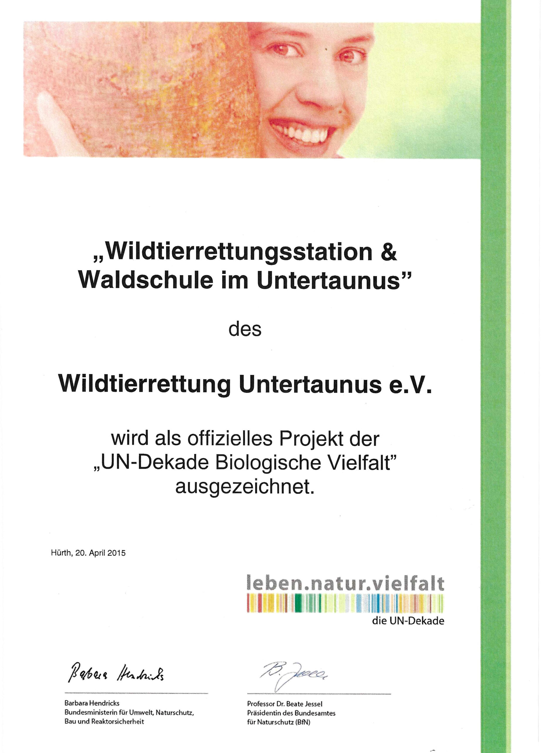 - Auszeichnung UN Dekade 2015